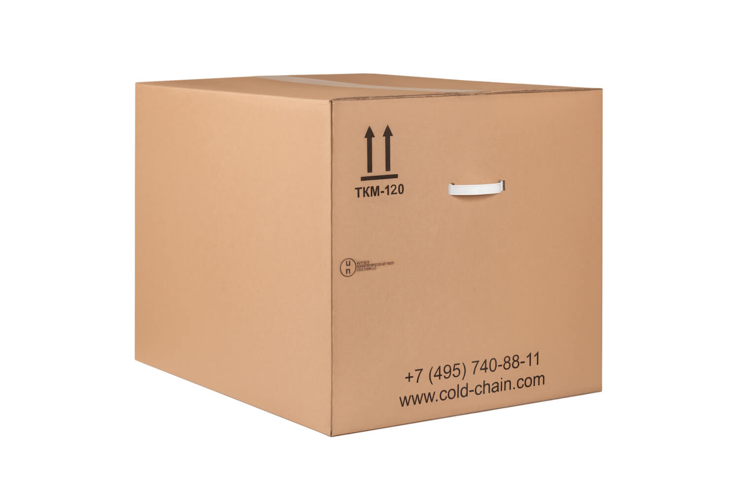 Медицинский термоконтейнер ТКМ-120. Внутренний объем - 126 л, габариты – 790х590х700 мм, вес - 5,9 кг.