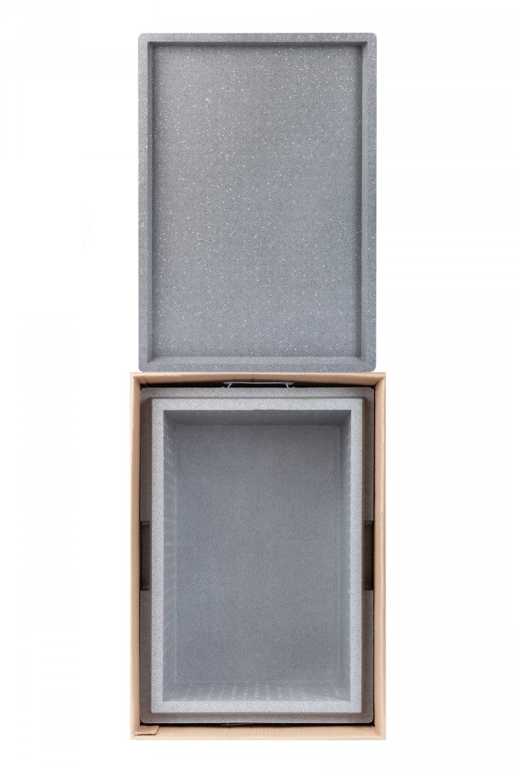 Медицинский термоконтейнер ТКМ-120 H. Внутренний объем - 126 л, габариты – 790х590х700 мм, вес - 5,9 кг.