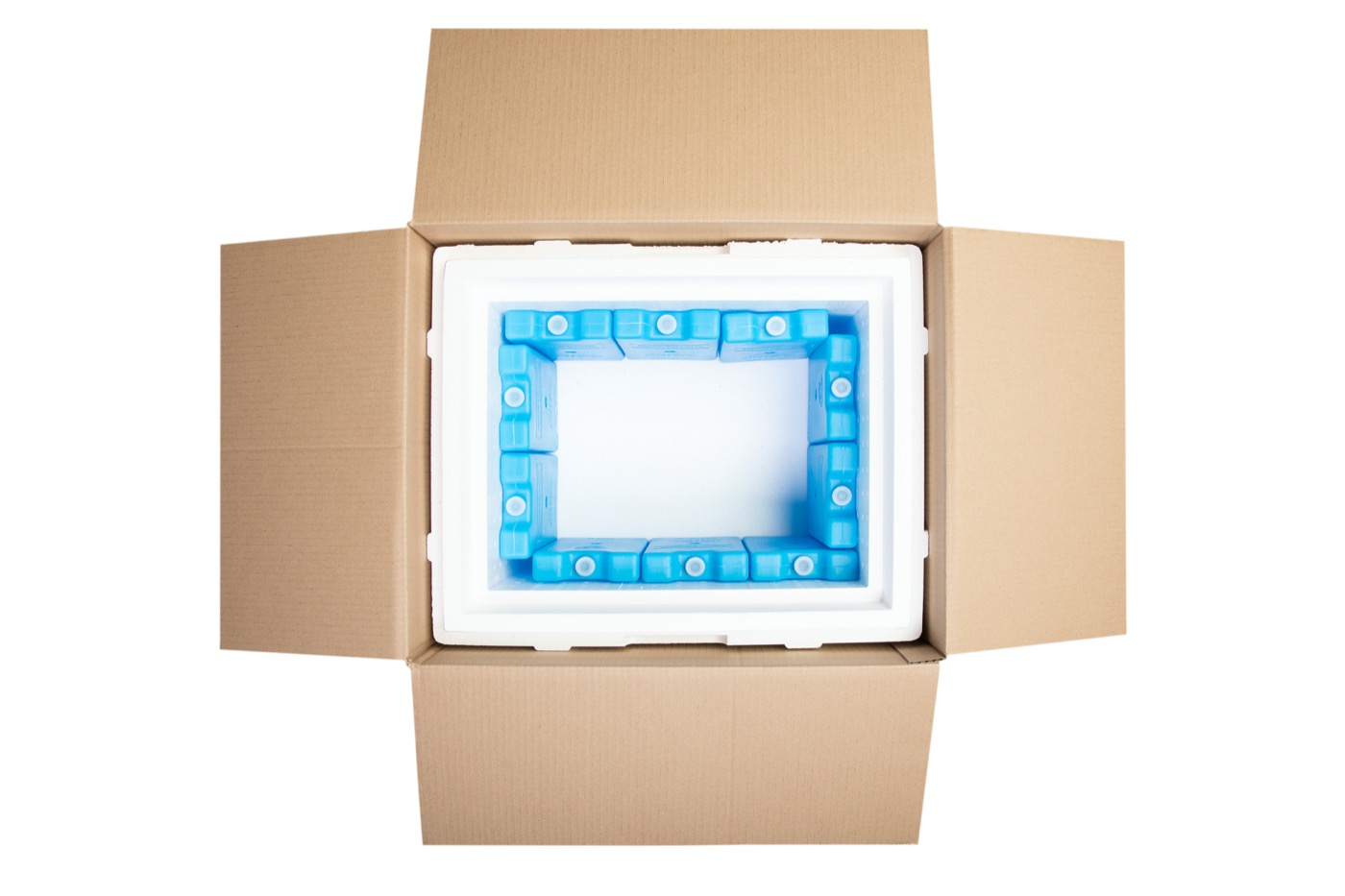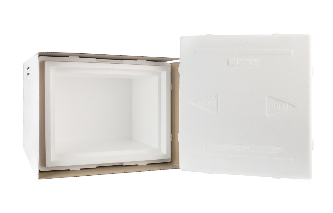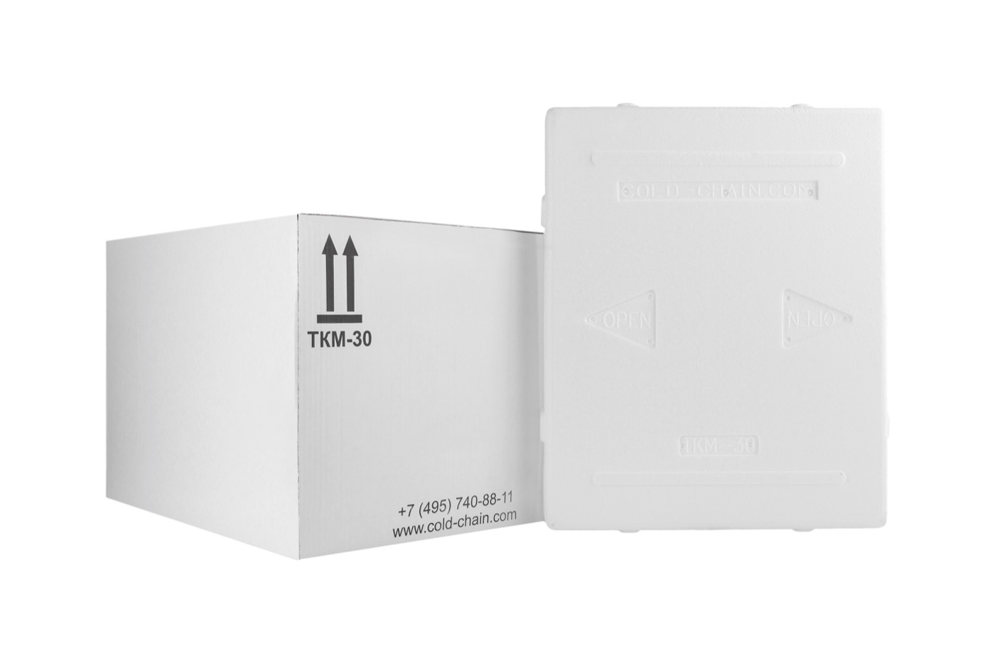 Медицинский термоконтейнер ТКМ-30. Внутренний объем - 28.8 л, габариты – 540 х 450 х 380 мм, вес - 2 кг.